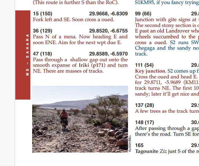Dave B also found repeated wpts on p171, Route S2 (pictured) below. And Vincent T noted KM81 on p170 should be 29.8459, -6.2040. Clearly I was not on form this day! Dave also noted the first waypoint of A11 on p229 is actually in Ouarzazate. The correct waypoint for Agdz south fuel is 30.6920, -6.4473. Thanks to all for calling these in.