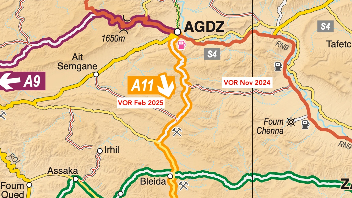 Main news: the 2906-m Tizi Ouano pass on the R704 is now all sealed between Tilmi and Agoudal (Routes H2, H8), and so is the once-notorious Gorge to Gorge link between Msemrir and Tamtatoucht, Route H2.
