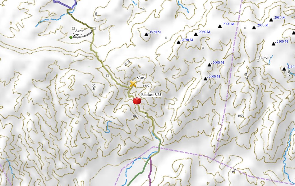 No great surprise to hear the northern BLV stage of W8 at the gorge (left south of Azrar remains unrepaired following the September 2024 floods, which were severe in this area.