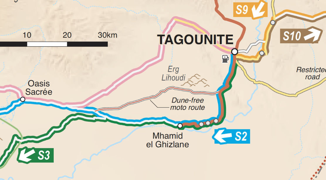 The Erg Chegaga routes exert a strong draw, especially to first timers who want to ‘see/ride the Sahara’. Note then that I’m advised by a moto rider the ‘dune-free’ OUT (left) suggested as a way of getting onto S2 to avoid Mhamid Sands is doable, but not so soft-sand and dune-free after all. Avoid unless you know better, and use the Jebel Bani gap route – S1KM148 – if you want to avoid as much sand as possible.