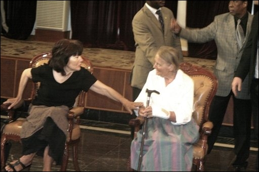 Somewhere is the desert north of Gao a grand handover rendezvous takes place. Not only are the two Canadians being ceremoniously handed over (it turned out the Malian driver had been freed a month earlier), but so too are two desperately emaciated European women, Marianne Petzold and Gabriela Greiner (right) who had been kidnapped with Greiner’s husband and a Brit, Edwin Dyer on the Mali-Niger border a month after Fowler’s party was grabbed.