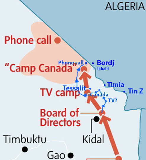 That will be a ‘yes’, then. Wikileaks since revealed that prisoners were released and a ransom was indeed paid (€700,000 according to this document, a figure with AQIM leaders thought was way too low. As with other Saharan ransoms, the conduit for the Canadians’ release was the then convenient and well stocked treasury of Ghadafi’s Libya, while the relevant government in denial most probably provided some kind of concessions to Libya as well as the other African counties involved, while claiming its hands were clean.