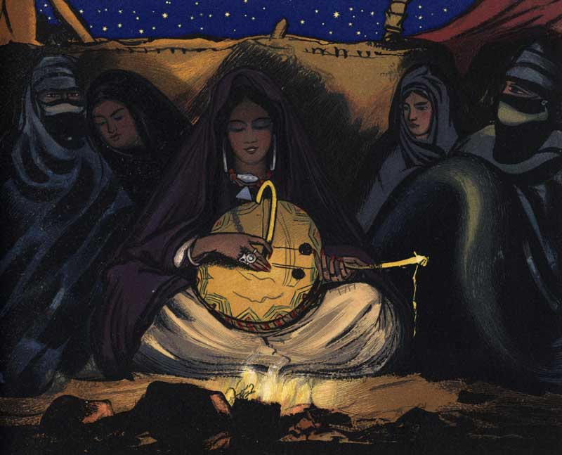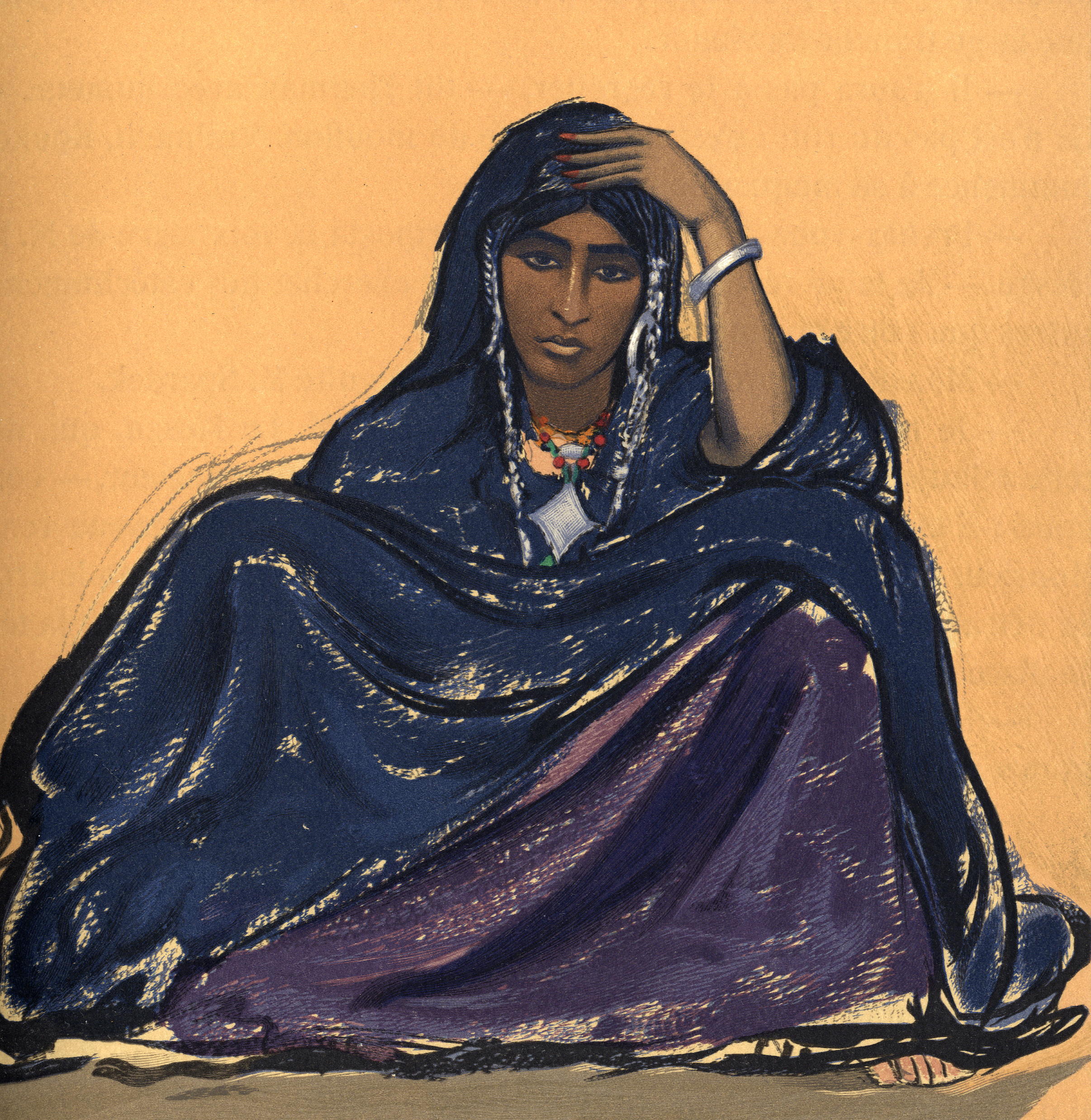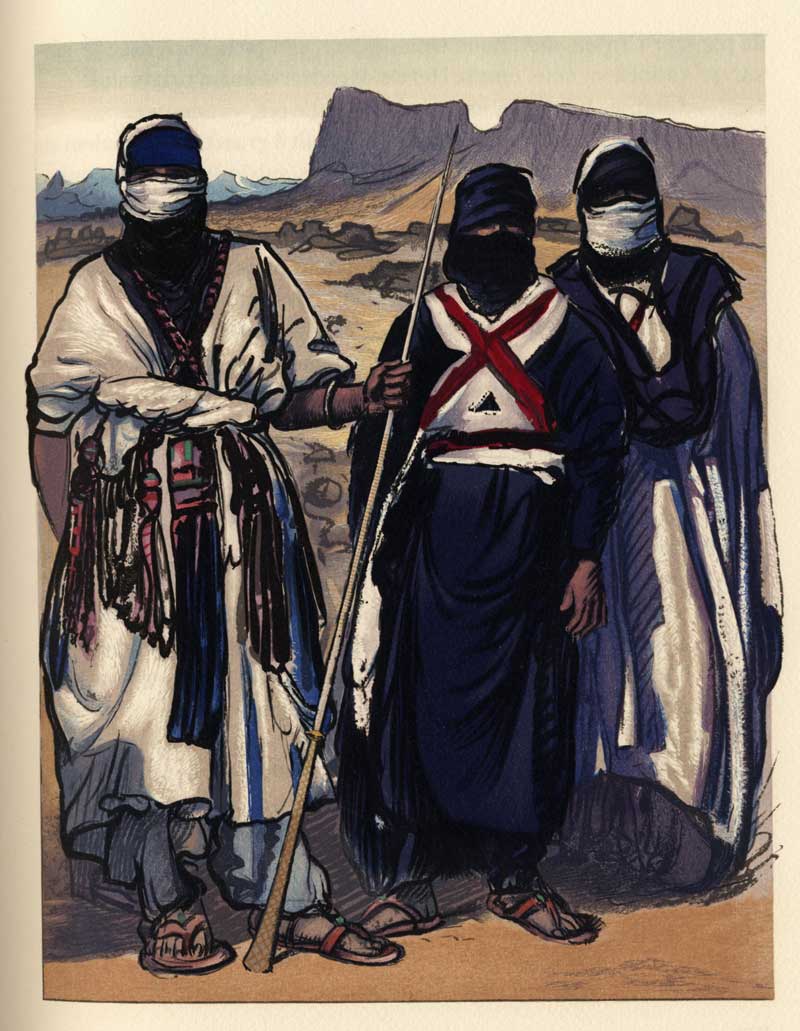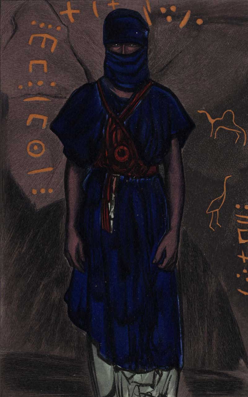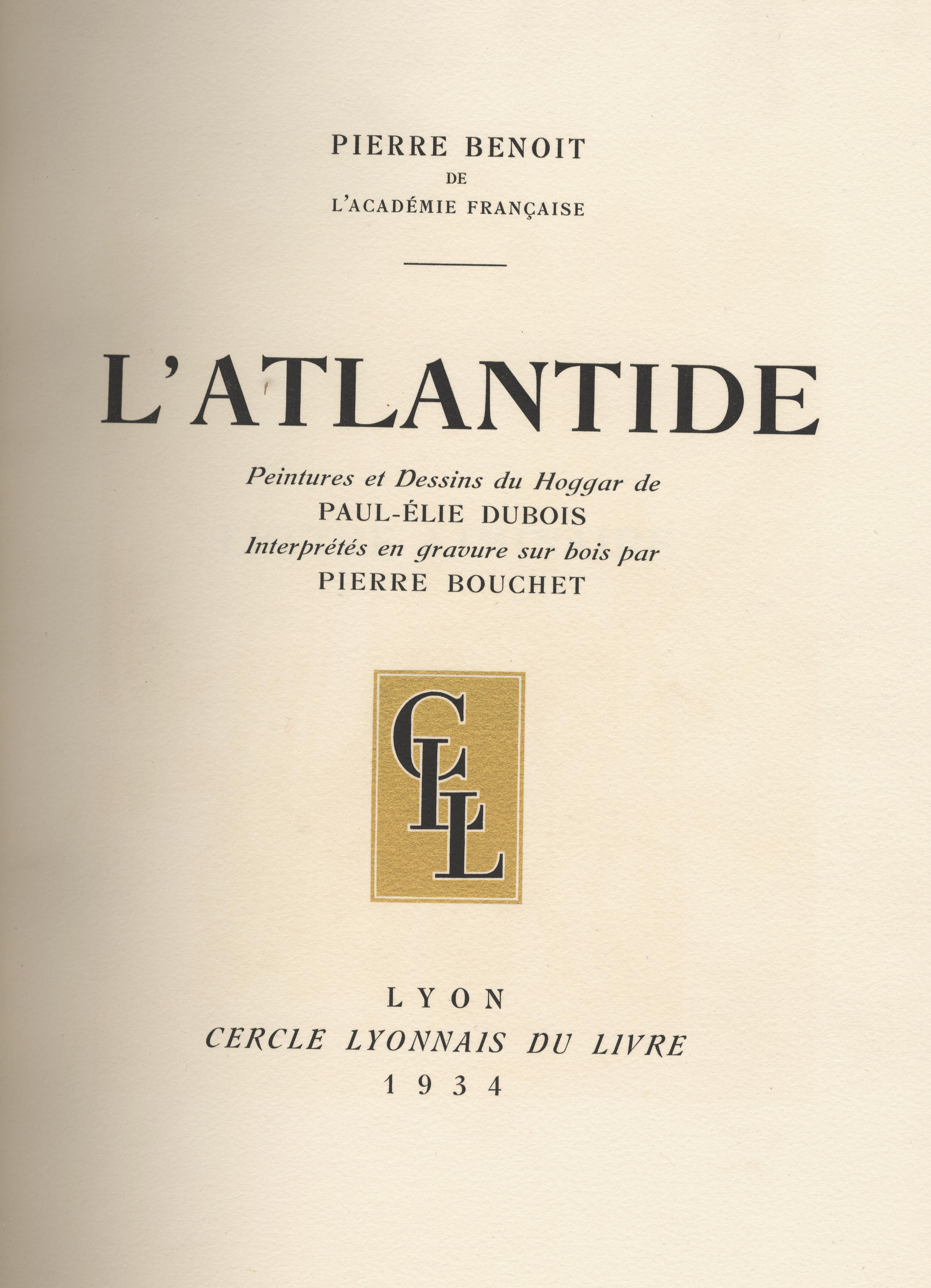 As well as illustrating Chants du Hoggar, French painter Paul Élie Dubois worked on a version of a celebrated novel of the time, L’Atlantide (Atlantis) by Pierre Benoit. It describes the vicissitudes of two French soldiers searching for lost compatriots in the Sahara and who end up in Atlantis, ruled by the beautiful Queen Antinea who seduces and then entombs her lovers. There’s more on the book and films here.
