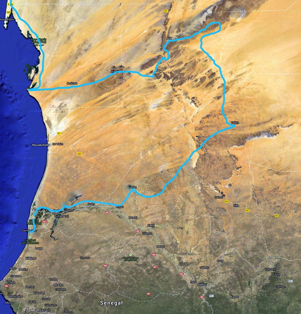 Pour le parcours Akjoujt-El Abiod, on a utilisé les points du guide de Cyril Ribas car Fadel ne connaissait pas.