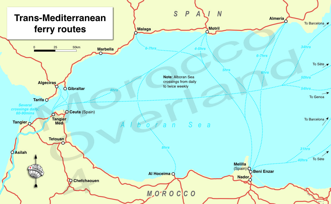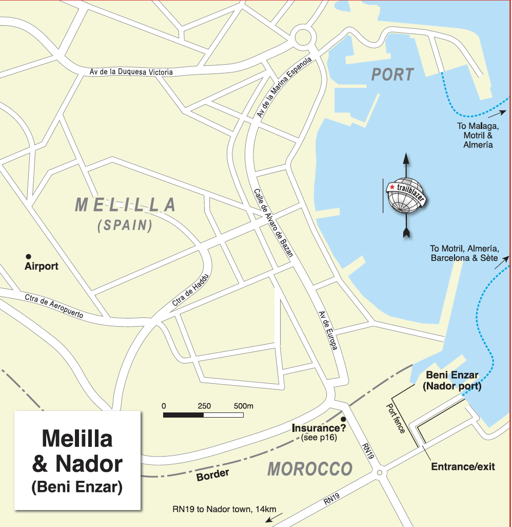 Now that Tan Med port is so easy, few go via ‘Tangier Ville‘ or the nearby Spanish enclave of Ceuta (Sp), although from Alicante, ferries to Melilla enclave (Sp) are often much cheaper than adjacent Nador. The payback can be that on the Spanish side of the land border with Morocco you’ll have annoying ‘helpers’ offering their services. They’re just looking for a tip at the end of it, but on a quiet day, you can manage without them.