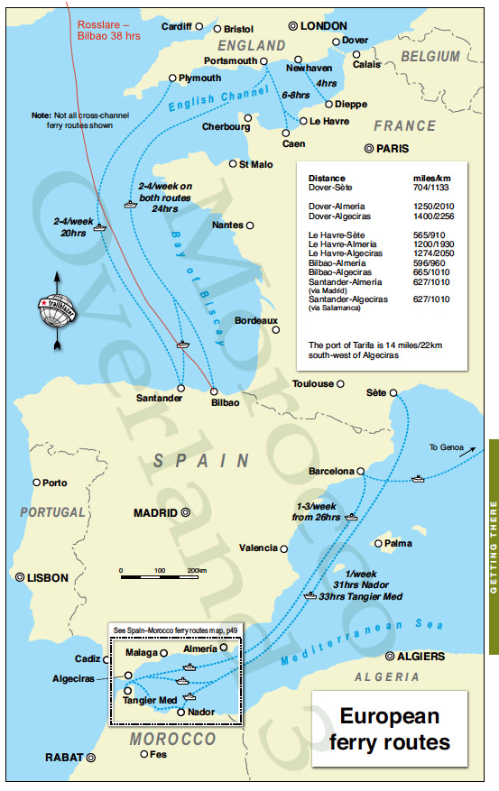 Most travellers from the UK heading to Morocco in the cooler months take ferries from Portsmouth to northern Spain: Bilbao or better still, Santander. When you add up tolls and fuel and time across France it works out the same price for less driving or riding.