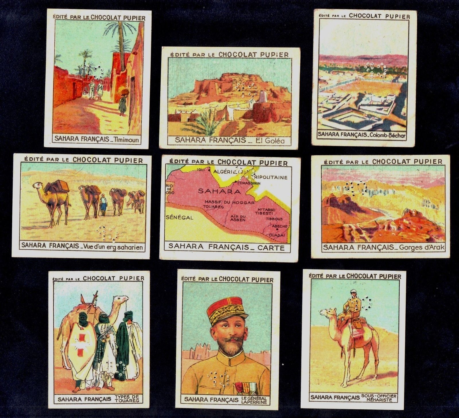 Some attractive cards featuring Saharan themes dating from around the middle of the 20th century. They’re being sold inexpensively by euro-cards on ebay. I have to say on the bottom one it looks like they have have got their tribal categories mixed up, but the Dutch ones (5 and 6) are especially attractive to an ex Tintin/Look & Learn fan.