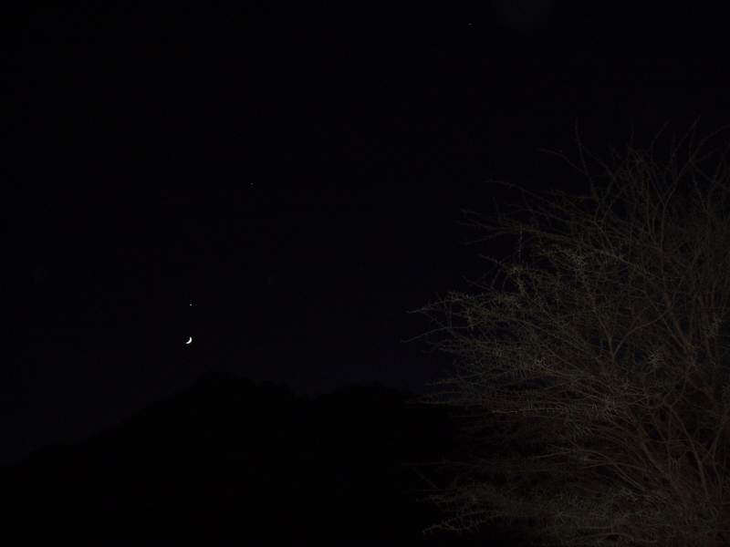 As darkness fell the crescent moon emerged from behind Garet’s flanks, hanging directly below Venus – a diabolical alignment considered inauspicious since before the days of Babylon.