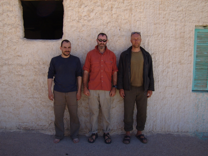 By the skin of our teeth we managed to slip thousands of pounds of camera gear and other restricted items through the scanners and past Customs, and spent the night in a house in Tam. Wanting to keep it simple and being hard men of the desert (or attracted to that idea on film!) the original plan had been to do it all out the back of a pickup; us three in the back, the crew up front. But the permit people were appalled at the idea: “Tourists are NOT goats” they exclaimed, so a station wagon was roped in. Just as well, the brief sessions filming in the back proved it would have been a rough fortnight indeed.