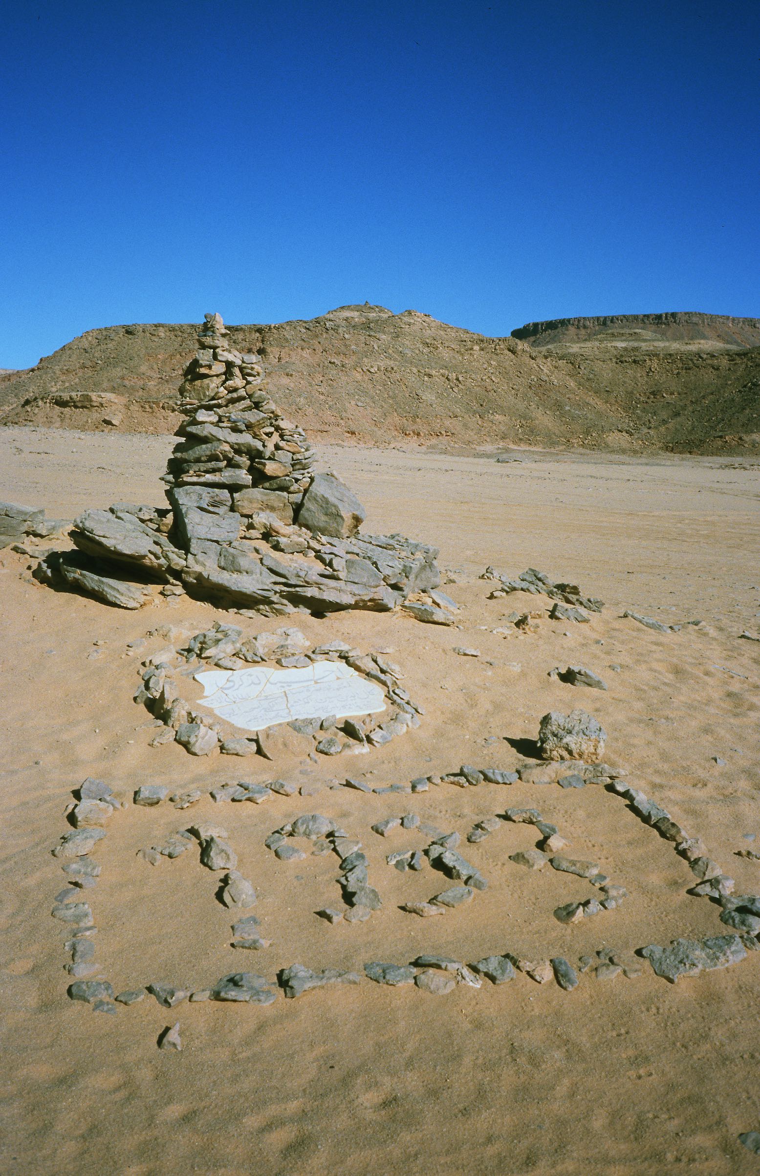 Exhausted after the digging and pushing of the crossing, we headed south deep into Wadi Hamra, then spent another very enjoyable day walking over the tool-scattered plateau to the adjacent Wadi Abdel Malik, spotted by Almasy and others from a biplane in the early 1930s and named after the last Tubu grazer who lived there. Almazy also believed this to be a most likely location of the ‘lost oasis’ of Zerzura, used by Tubu raiders who set off to attack Dakhla oasis.