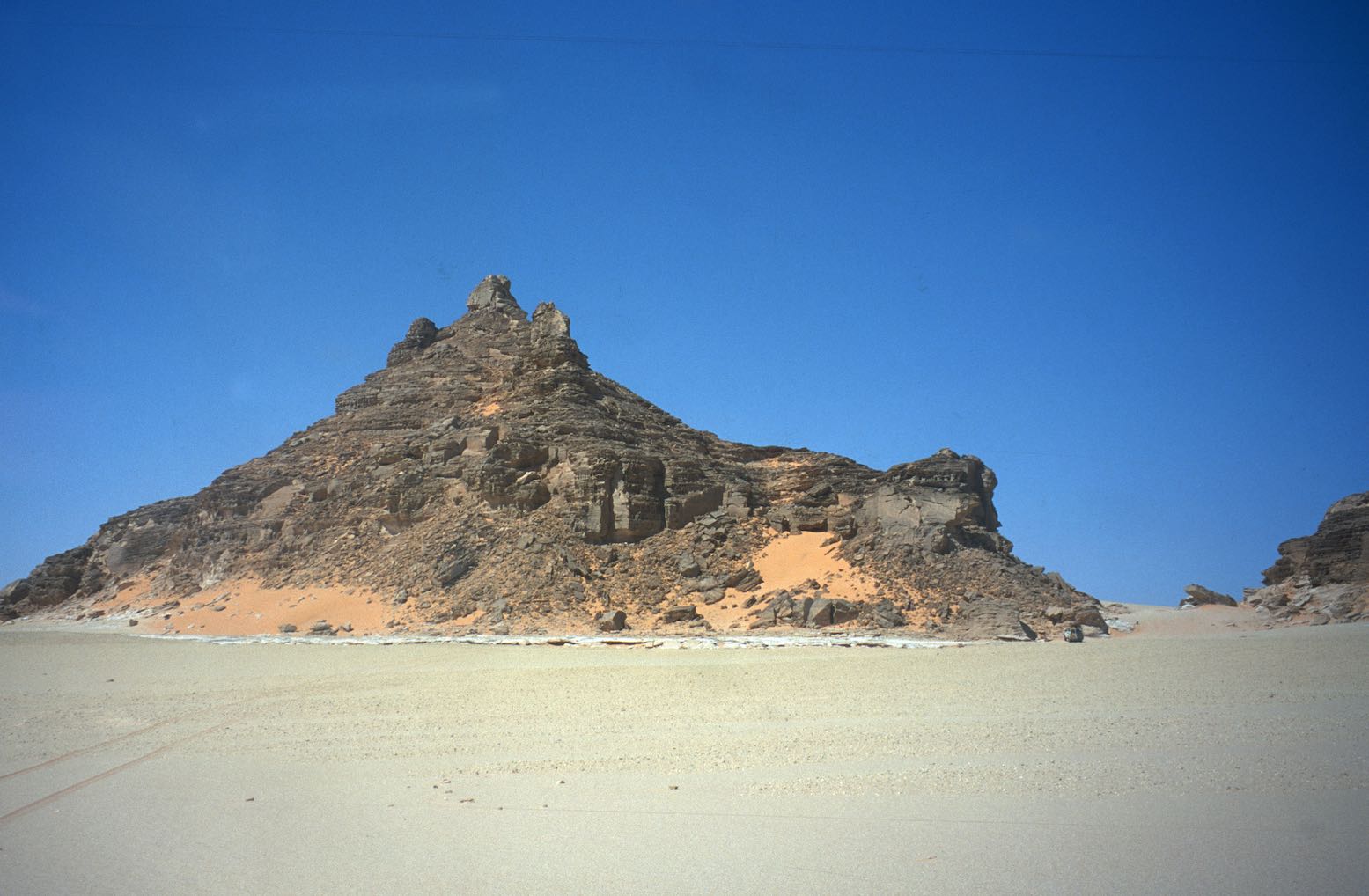 On reaching Bir Terfawi we left the tarmac and set off west across the Selima Sand Sheet, arriving at the isolated landmark of Jebel Kamil after a day and a half. This cone-shaped hill was a wartime fuel dump from the Sudan Defence Force convoys supplying Kufra from the Nile, and is still littered with Shell petrol tins. I was invited to drive one of the 75s, Andras having had not such good experiences with local drivers off road. I was told under no circumstances to use the air-con; there being some urban myth about revs rising dramatically as the pump kicks in. But the risk of an overburdened, 130-hp 70-series lurching uncontrollably off a dune lip seemed far fetched.