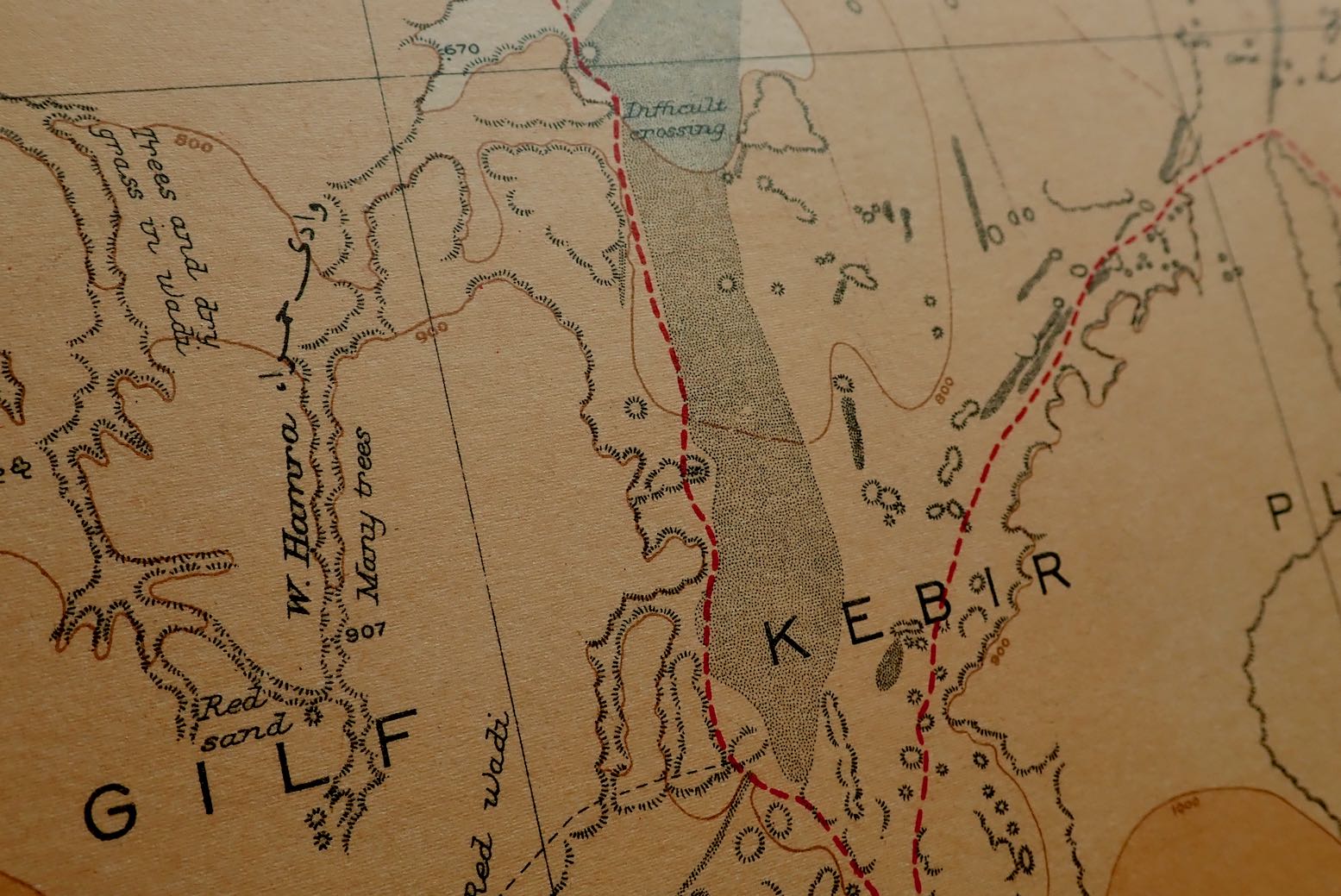 We camped in a valley bizarrely dammed by a perfectly dune of sand 200 feet high and now clearly visible online. We rose early next day to attempt to cross the cordon of dunes blocking access to the northwestern Gilf valleys, dryly annotated as ‘Difficult Crossing’ on the 1942 British Survey map, still one of the best for the area. They were first crossed in 1935 by WB Kennedy Shaw and his group using Model A Ford.