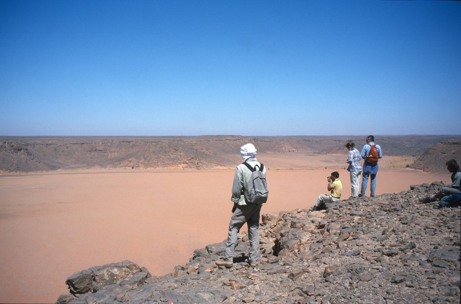 Using from NASA satellite imagery [this was all pre-Google Earth] and the British Survey map, Andras led us through the erg’s seven-kilometre width in six hours, notwithstanding a freak out by one of the Egyptians who, along with a wheel brace, grabbed the keys from two cars and yelled “We’re all going to die if we go there”.