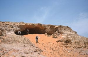 From Jebel Kamil we headed northwest on a GPS bearing to Eight Bells on the eastern edge of the Gilf Kebir from where Andras had a written description to a cave of paintings discovered by Shaw in the 1930s. We drove over a pass into the stunning Wadi Wassa and followed it west, crested another pass with little difficulty.