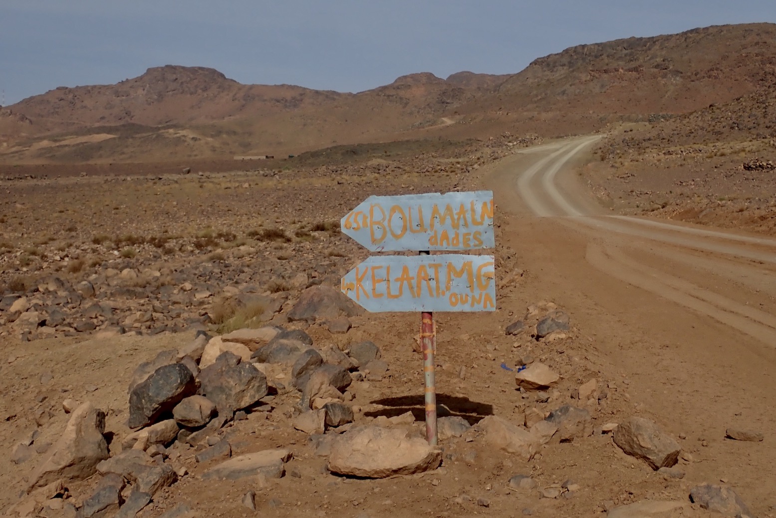 42 (62) Blue sign junction just east of Tagmout ‘village’, such as it is. Turn left for both Kelaa (as signed; MH14/15) and almost immediately left again (no sign) up to the Tachbouft Pass (KM45; 1805m) visible to the southwest for the run west to Bou Skour.