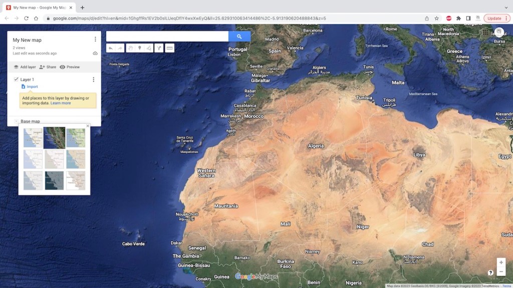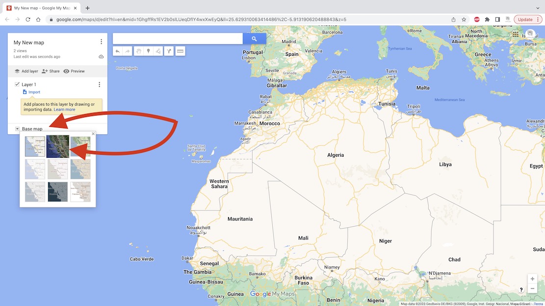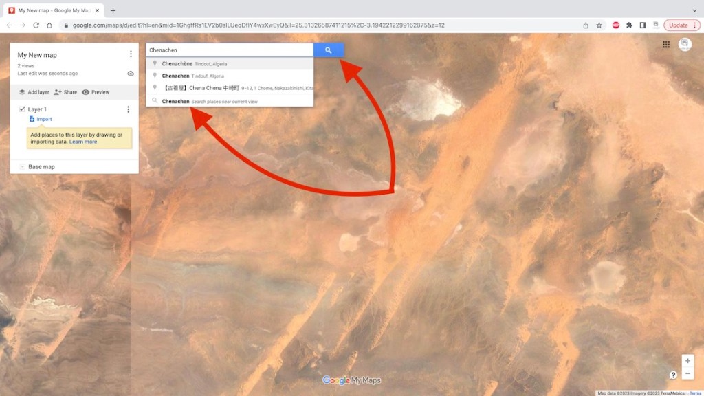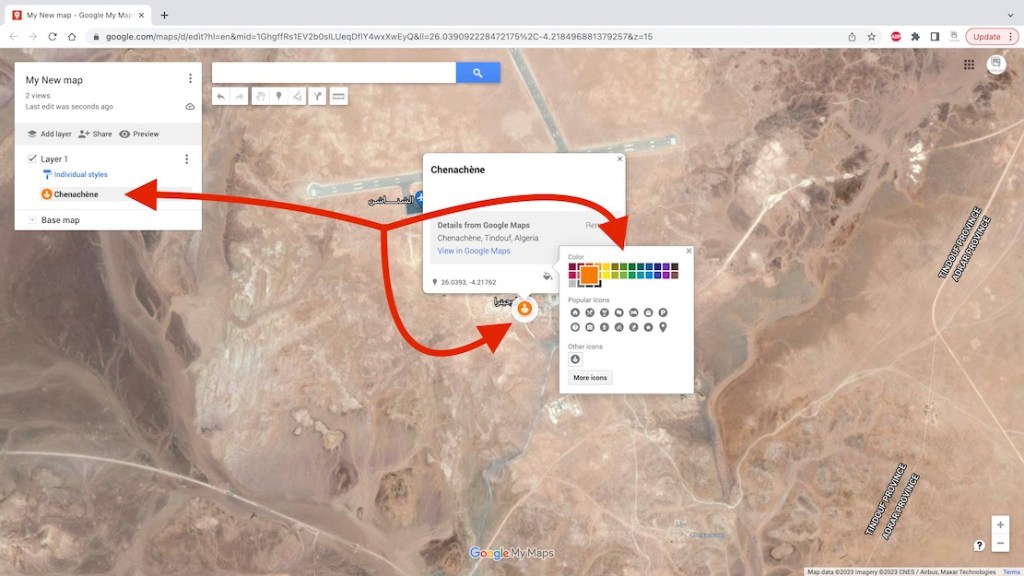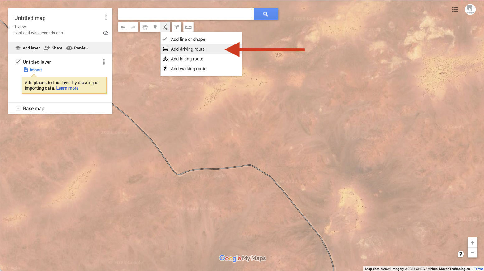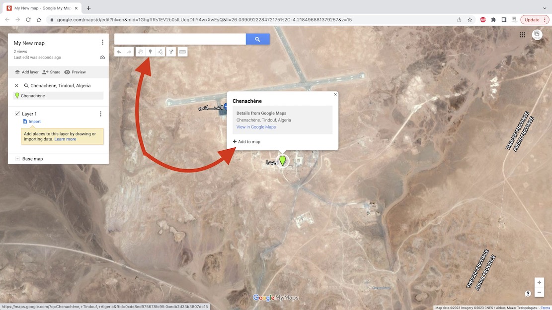 With a Google account (…@gmail, etc) you can save your routes on a Google ‘My Map‘ as has been done for the Trans Morocco Trail. It can have as much detail (tracklogs and waypoints) as you like, but Google ‘My Maps‘ are limited to about 10 layers. Layers are a bit like folders (with infinite capacity) and sometimes you have to shift tracklogs or waypoints into a pre-existing layer to free up a new one so you can import more.