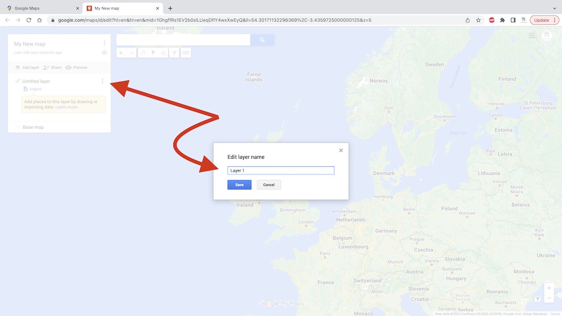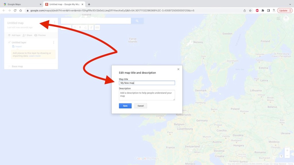This map can be shared or exported but will be saved online and be viewable/editable wherever you have internet.