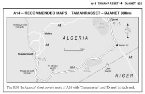 The quickest way was to cut across southern Algeria, because south of the road between Tam and Djanet, the 200 kilometre band of desert to the unmarked Niger border was entirely unpopulated but easily navigable. Even when we did Route A14 (left) in the early 2000s, we were surprised how well developed and even corrugated this unknown track was. At that time Algeria had its own smuggling networks running between Mali and Niger, but come 2011 had nothing to gain and much to lose from the added instability and redistribution of Libyan arms.