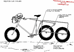 A regular bicycle will struggle on the piste to carry more than a couple of days of water. One answer: Jean Naud’s 2WD, three-wheeled fatbike replicating the multi-tyred Renaults of yore. And like a modern lorry, to reduce the pedalling effort, one axle on Naud’s contraption could be lifted and disengaged (left) when payloads dropped or the terrain allowed. It worked too, he crossed the Sahara twice on fat bikes. Read more.