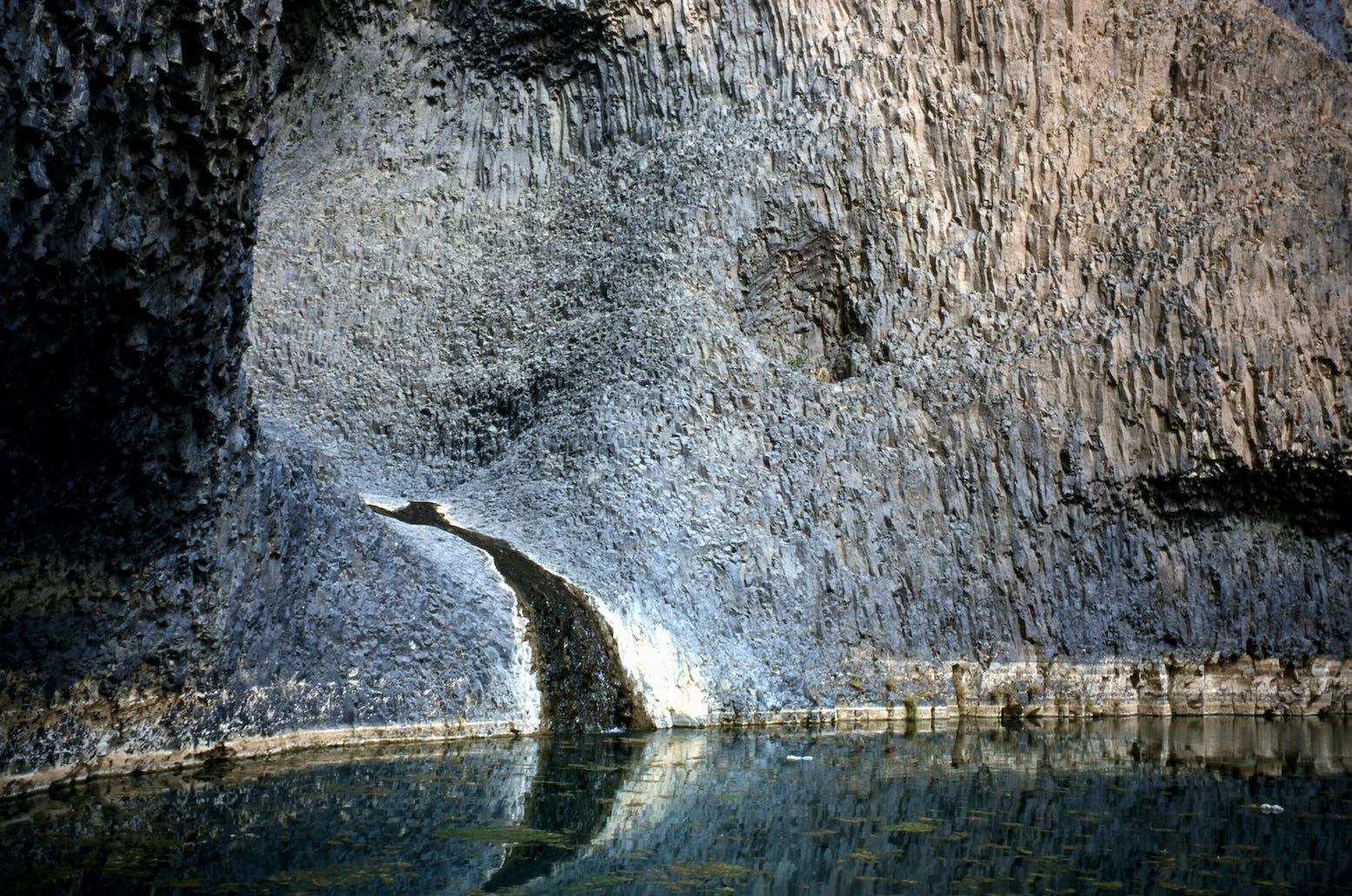 Near Tabant we bought a couple of litres of fuel for the bikes then carried on over the snowy High Atlas passes down to Kelaa. Near Alemdoun the other two missed the turning for the unsealed Amegag gorge route (above) which I followed, knowing we’d catch up. It’s a nice variation, but flood prone (hense the road over the pass). Within a couple of days it was washed out by rains again.