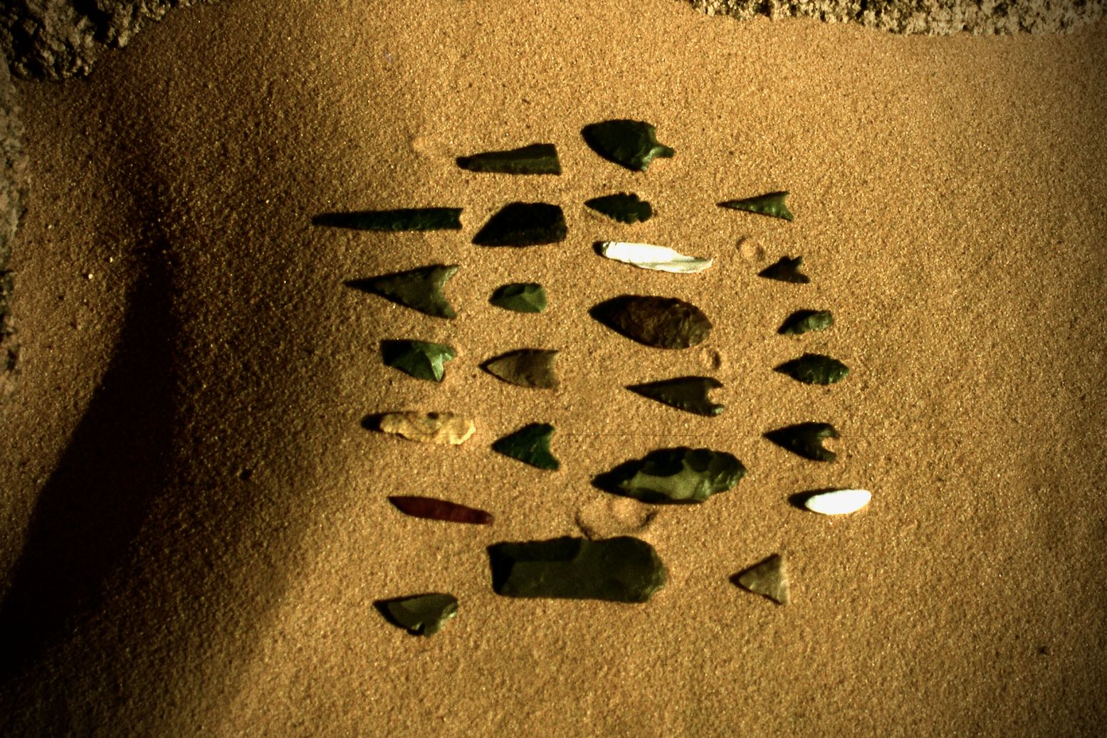 A tongue of jumbled dunes spill through the mouth of the cirque of Arakao (above), dividing the easily visited south side from the less accessible northern half. We camped on the crest of the dune cordon and spread out to explore. As one would expect, a sheltered site like Arakao was inhabited during Neolithic times and probably long before that. We visited several tombs in the southeast corner and kicked about for more artefacts, usually made from the distinctively green flint-like jasperite found in this region.