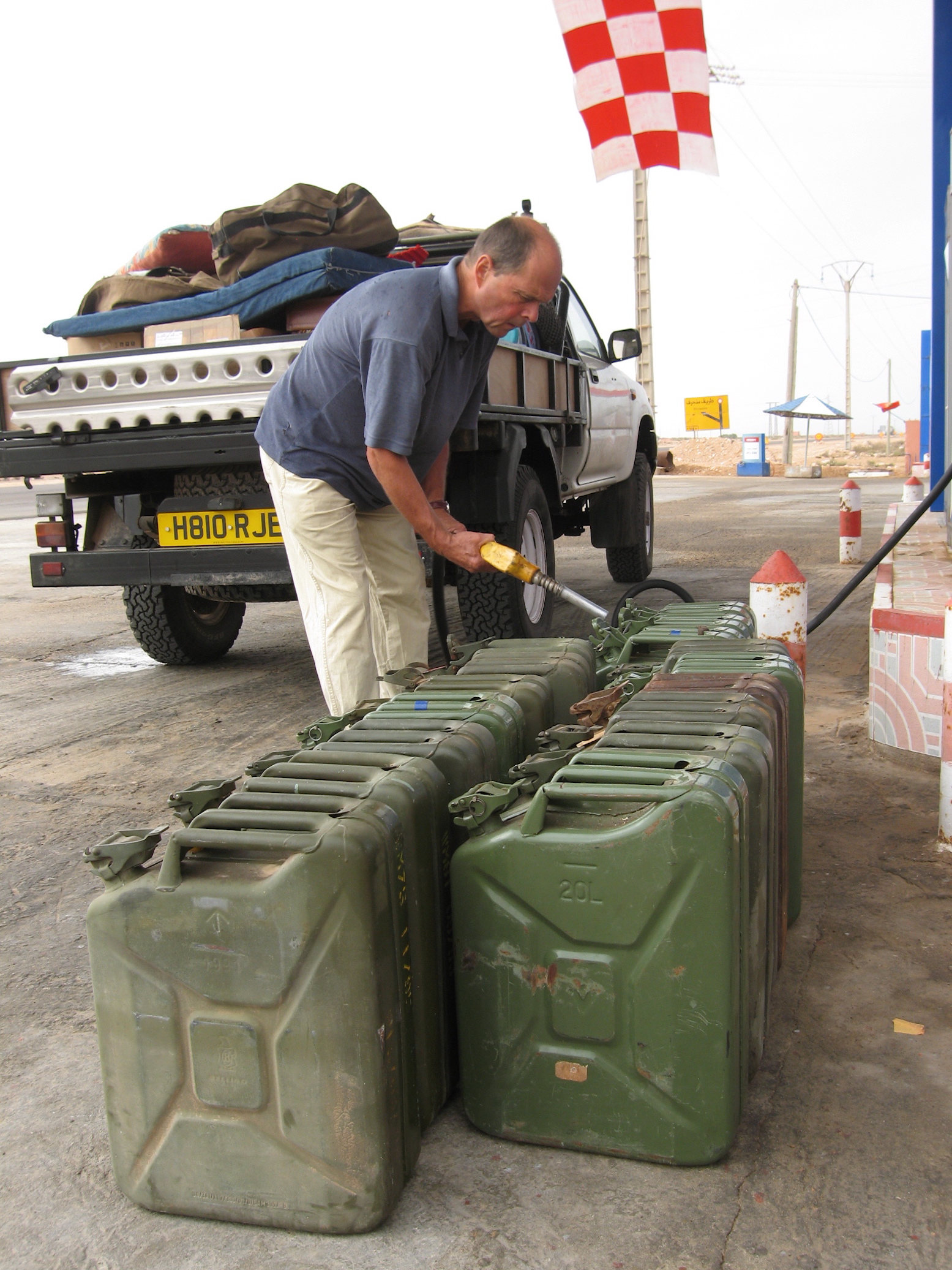 For travellers who don’t expect to be making a lifetime of Sahara travel and haven’t got limitless funds, jerricans provide the simple answer to increasing your vehicle’s range. Available sometimes still unused from military surplus outlets for around £10, they make reliable and robust fuel containers.