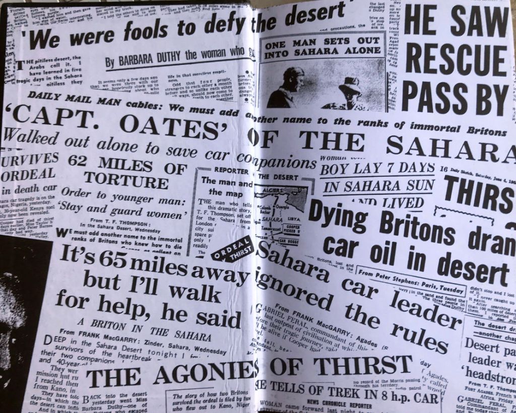 I was working at London’s Travellers’ Bookshop when Trek came out in 1991 and of course, I gobbled up the desert drama, painstakingly researched by Paul Stewart (better known for the Edge Chronicles young adult book series). The book came about after Stewart had the story recounted one of the expedition’s survivor’s at her Kenyan guesthouse in the 1980s. He soon realised it was a headline on a June 1955 ‘day of your birth’ newspaper reprint he’d been gifted decades later. Stewart was born on the day the sensationalised events broke across the UK press (see bottom of the page). Recently writing up the similar Danish story which took place a year earlier in 1954, I realised I’d never reviewed Trek, so recently blitzed through it recently. Only this time I had a slightly more knowledgeable eye, having evolved into a Sahara and overland know-all in the intervening decades.