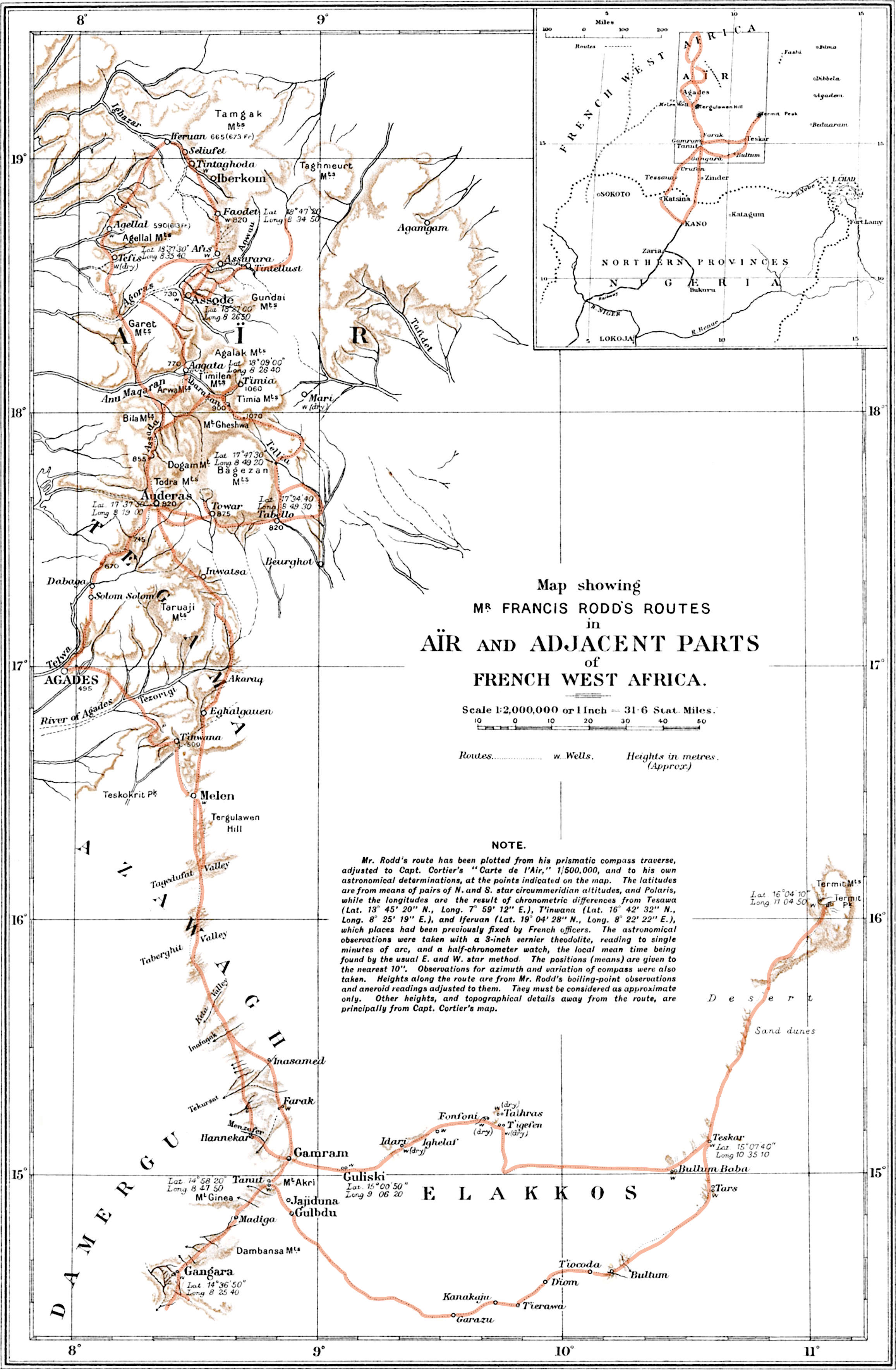Year’s ago I owned a prized copy of Francis Rodd’s, The People of the Veil (now free online) documenting his travels and studies among the Aïr Tuareg in 1922-3. Not sure I ever actually read it cover to cover, but it remains one of the most detailed ethnographic studies of the Aïr- or southern Tuareg in English. Herni Duverier had written Les Touareg du Nord sixty years earlier while travelling in Algeria’s Hoggar and Ajjer regions. And a decade or more before that, the indefatigable Heinrich Barth had travelled south from Ghat, over the Tenere, down through the Aïr, all the way to Timbuktu then back the long way via Bilma, before dying in Berlin, aged just 44.