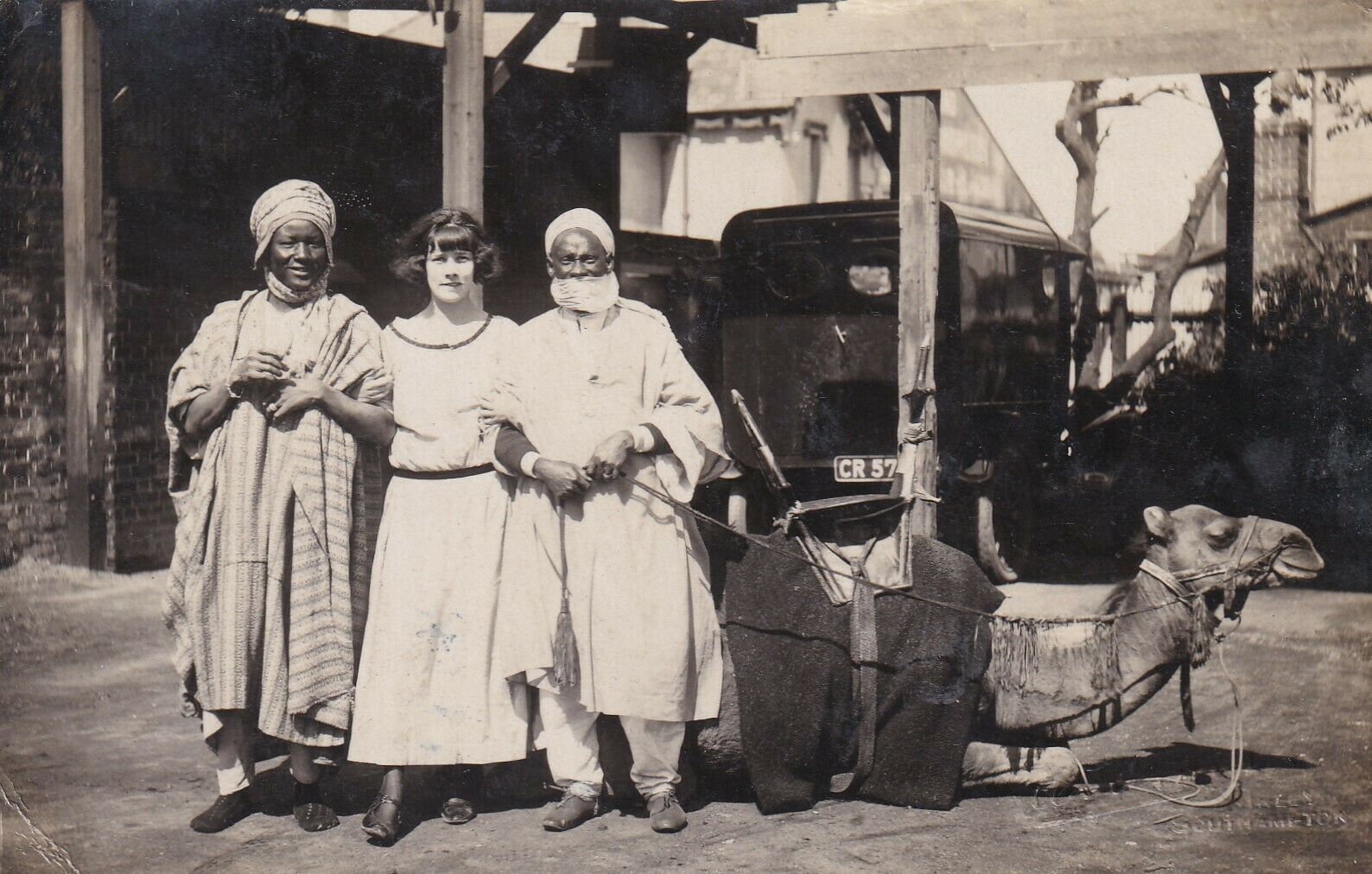 Back in England the press ran with the adventure and a film, ‘Crossing the Great Sahara‘, was soon produced. All four (and possibly some camels) went on to become part of a travelling roadshow in the UK and Europe. Left, a girl posses with Ali and Sakari and a camel at a screening of the film in Southampton.