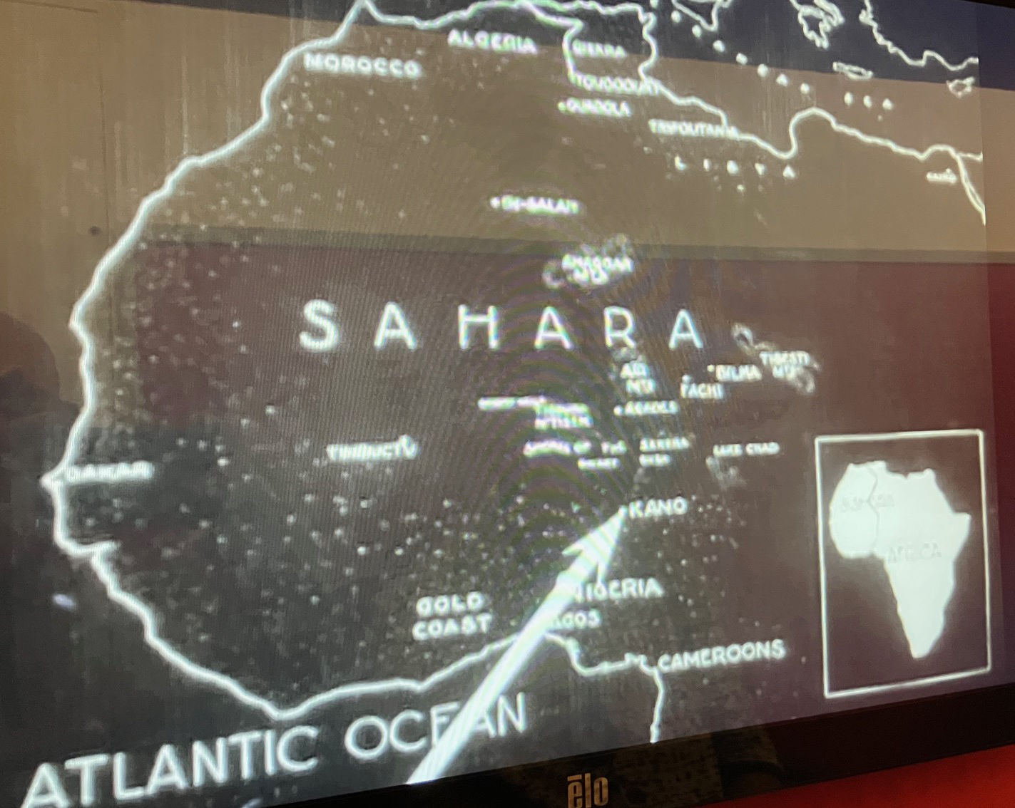 The film is archived at the BFI, but while not viewable online, you can easily walk into the BFI’s Mediatheque viewing library on London’s Southbank and search for it the database. It’s the oldest Sahara film listed, but unfortunately only the first couple of reels survived or got digitised. In 20 minutes all you see is the grand departure from Liverpool, some British dignitaries in Nigeria then various Hausa and Fulani bush folk performing for the camera. What there is is well shot; what a shame the rest is missing and we never get to see the Aïr. It must have been a huge effort to shoot it all. One interesting caption was an observation along the lines of ‘Was this where Blues originated?’, presumably in response to hearing African music. I know that connection was widely repeated once World Music came on the scene in the 1990s, but did not know it went that far back.