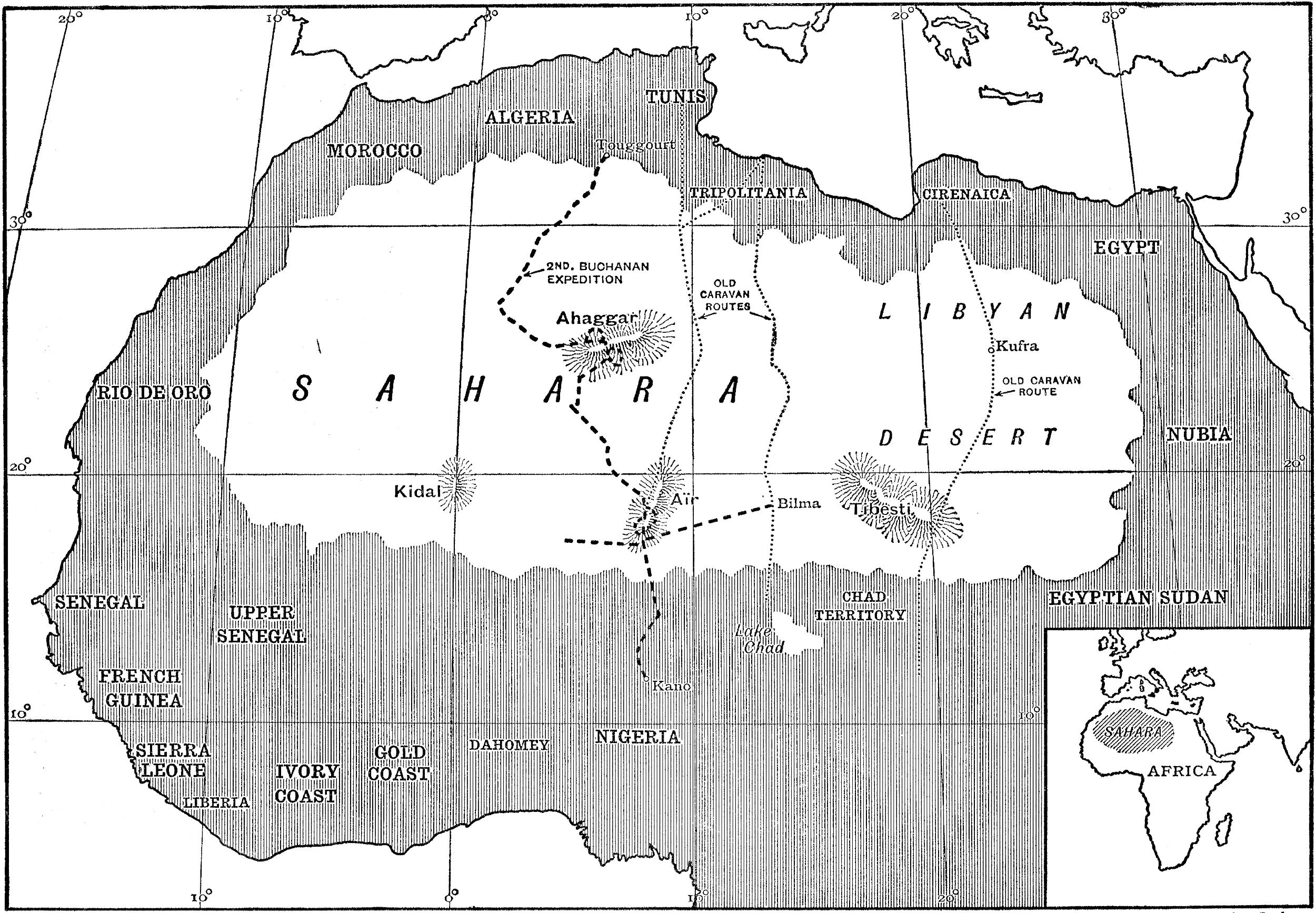 The only map in the book. Note the British habit of separating the [French] ‘Sahara’ from the [more British] ‘Libyan Desert’.