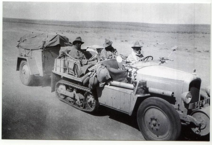 Around this time Citroen were the first to cross the great desert via the largely flat but very long Tanezrouft Piste in a vehicle fitted with ‘autochenille’ or Kegresse half=tracks (below). Very slow but not as noisy or deadly as la Sauterelle, they crawled across the desert and were used by Prince Kemal el Din (left) to ‘discover’ the lost plateau of the Gilf Kebir in southwestern Egypt.