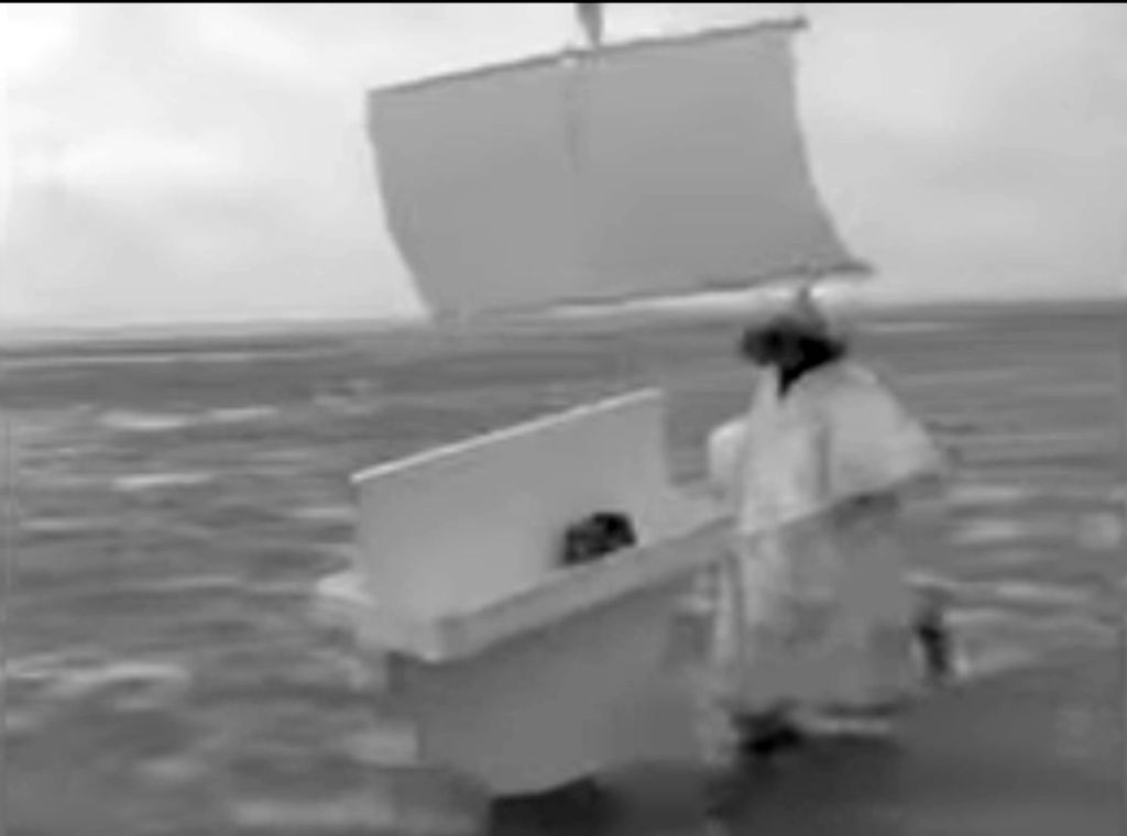 National mountaineering treasure Chris Bonington contributed a harsh foreword: ‘Not much of an adventure’ I thought, ‘pushing this ridiculous wheelbarrow along a well travelled road or track with a [support] Land Rover in constant attendance.’ You’d hope that line is followed by ‘… but Howard’s monumental endeavour changed the face of human powered adventuring…” or some such. I can’t recall, but do remember similar conclusions to CB on reading the book decades ago: a silly stunt that turned into an endurance test. The sail idea soon proved useless so he had to resort to pushing the barrow for the three-month, 2000-mile crossing in his flapping get up. There’s some grainy archive film on the BBC of a lightly mocking Bob Wellings (remember him?) interviewing Rev. Howard training on Morecombe Sands in full costume. He ends with ‘I have no fears whatsoever’ The 1990 book is easily found online, new or used.