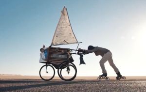 With the 21st century bringing a choice of no less than three asphalt roads spanning the Sahara at 1500-mile intervals, it was time for the rollerblade (or ‘inline skate’) and the humble push-cart sail-tricycle to have their day in the sun. It’s what rollerblades and bitumen were made for. Five thousand clicks from Spain to Dakar, watch Mark Heuss’ cool short film below.