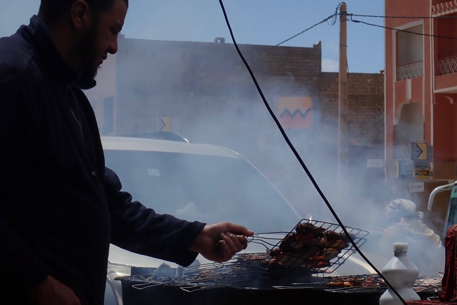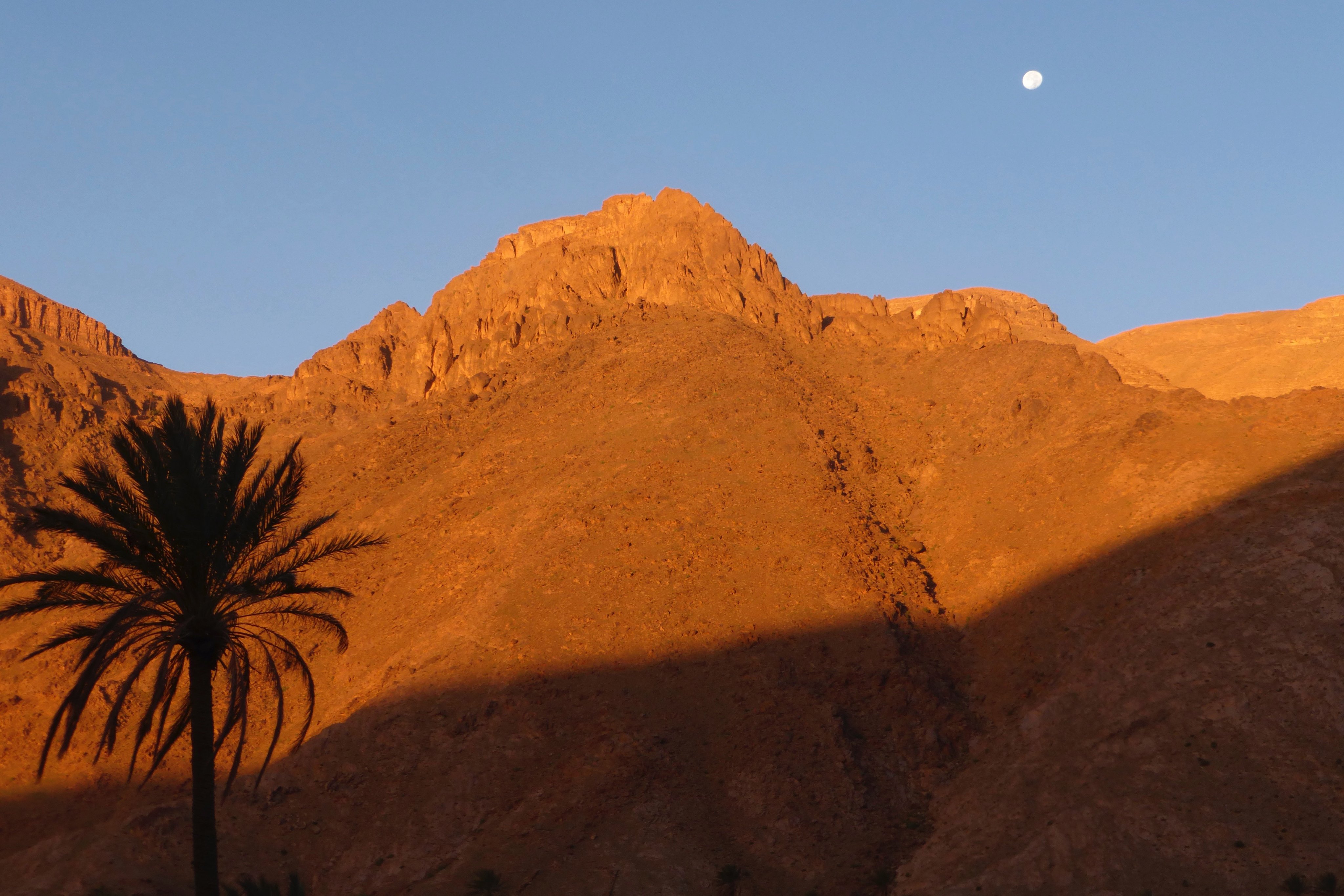 We camped in a oued (“never camp in a oued!”) where Ibrahim cooked the first of many spectacular meals. How long could this last I wondered, and sure enough, by the time we got to the Kaouar in the east, things got a bit plainer, but his outstanding lunchtime salads were works of art, composed of fresh ingredients for much longer than you’d expect in fridge-free motoring. Another great aspect of this tour was letting us loose on foot while the morning (and sometimes lunchtime) camp was packed up by the crew. With a bit of luck you could get a quiet couple of miles under your soles before the cars caught up.
