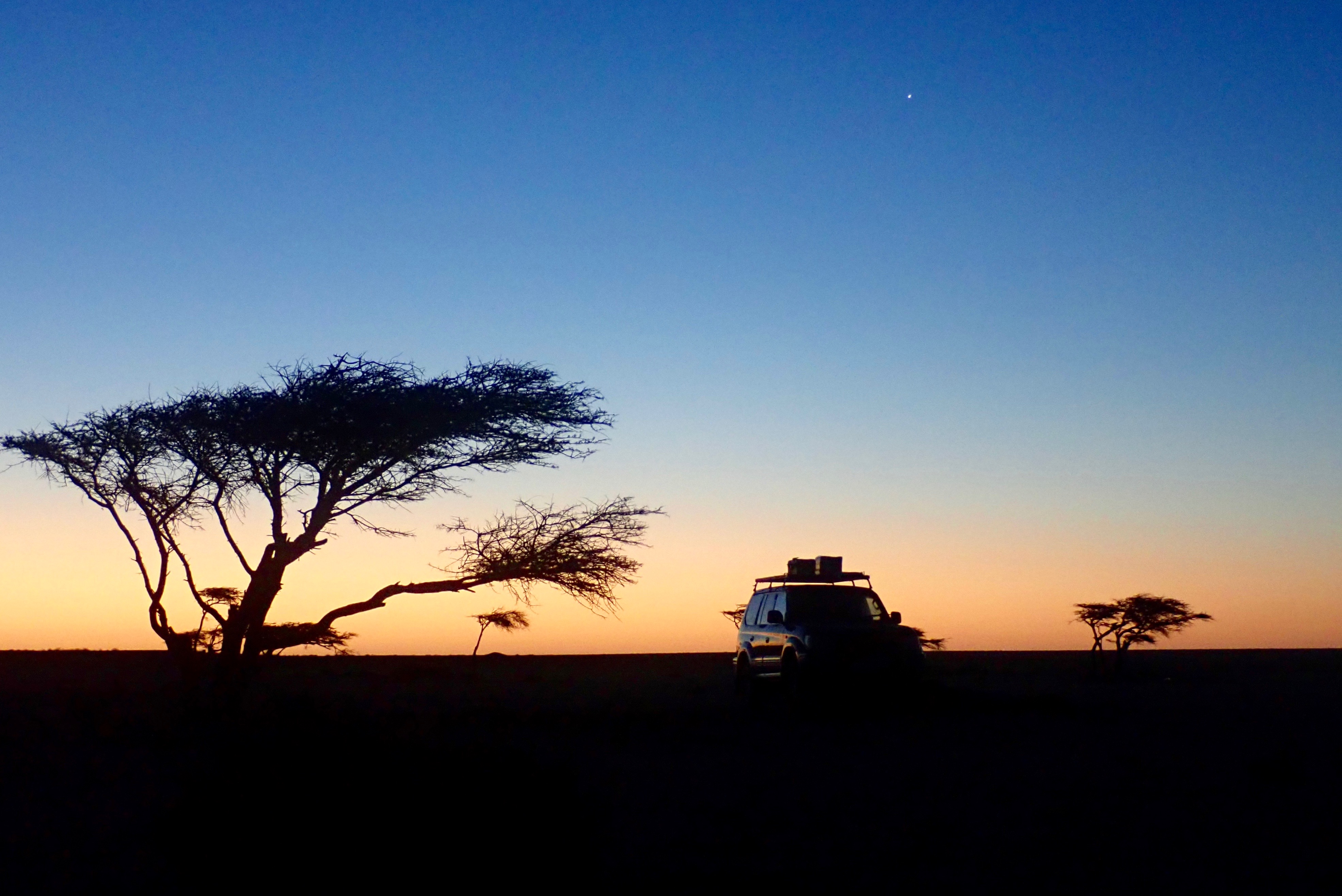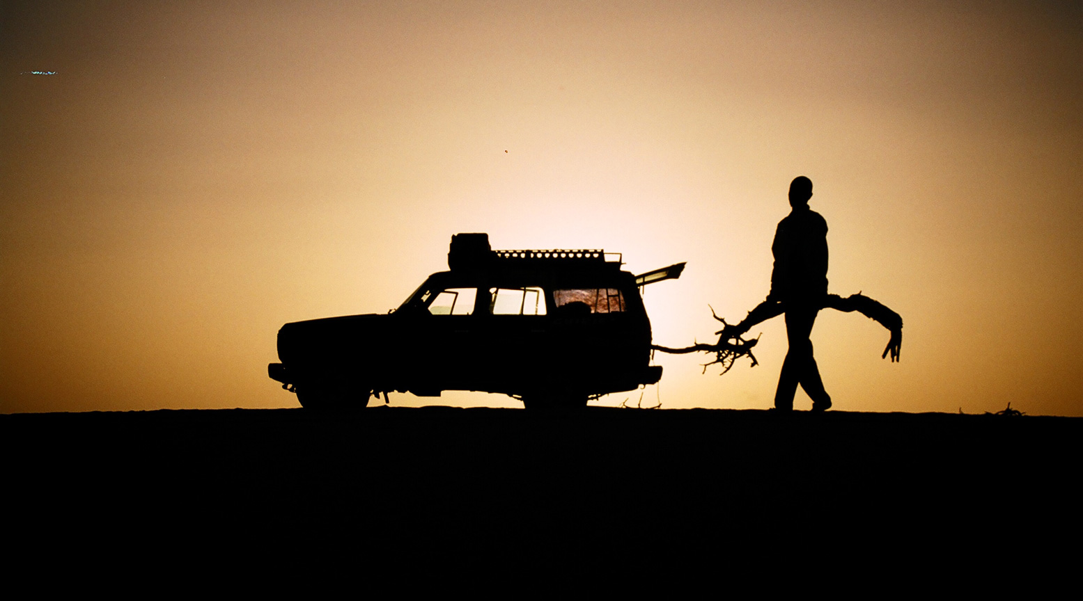 We cruised down the east side of the Aïr, stopping to admire the amazingly and bizarre engravings at OuedTanakom and Anakom, at times driving continuously over stones all fashioned into tools over the millennia. One can visualise the Neolithic settlements spread out by a long-gone river running out of the mountains, while wild game and herds grazed on the plains of the Tenere, now covered in sand. At ‘Long Stones Pass’ we could make out the mass of Adrar Madet and the Erg Brusset to the east, and later that afternoon finally shook off the Aïr’s margins and headed across the serir for the Tree.
