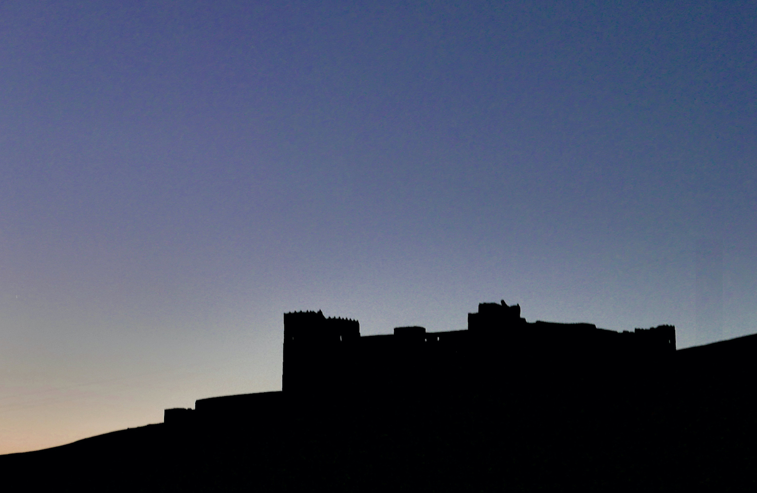 People used to ask: where was the front cover of your Morocco Overland 3 book? Gara Medoaur, I say, though I’ve yet to actually go there. A distinctive outcrop just north of the N12 near Rissani, the epic cover was shot by desert trucker Marc Heinzelmann with a drone, something that’s increasingly tricky to smuggle in these days. Despite appearances, Gara is not an ancient volcano – the near-horizontal sedimentary strata give that away. Time and again I hear or read of people attributing the desert’s dramatic formations to volcanism, though you get that too. But Gara sure looks good and, like so many isolated hills in Morocco, large and small, it was used as a strategic natural fortress and observation post from a millennium ago when nearby Sijilmassa, was a northern terminus of the medieval caravan trade from Timbuktu. Inside Gara’s ‘crater’, shallow ravines were dammed to collect water and there are long eroded remains of dwellings. In later years it’s said it was a Portuguese prison, a similar enclosure for slaves, or just a storehouse.