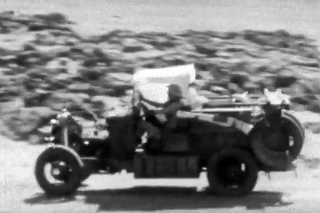 The 49-minute-long film describes the original recce in 1929 into the Great Sand Sea of the Western Desert via Ain Dalla spring. It was here that Bagnold’s group found lowering tyre pressures, as well as using sand plates and rope ladders, enabled heavy vehicles to traverse soft dunes.
