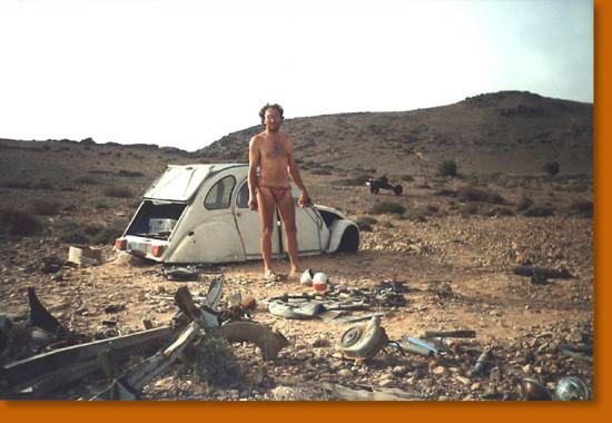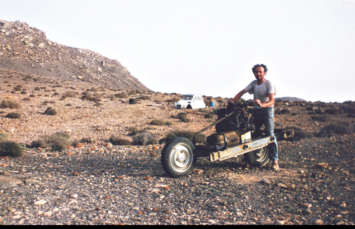 The way the story was initially reported in English – using images shot later in a quarry (above) – Saharan know-alls like myself were initially sceptical. If it really happened why not just walk back half a day to the road? I researched the yarn more closely for my Morocco guidebook and came across his own account published in a 2CV enthusiasts’ magazine a decade after the events. A faint ring of truth came through. Perhaps he did build the 2CV bike, but not in quite the circumstances he claimed.