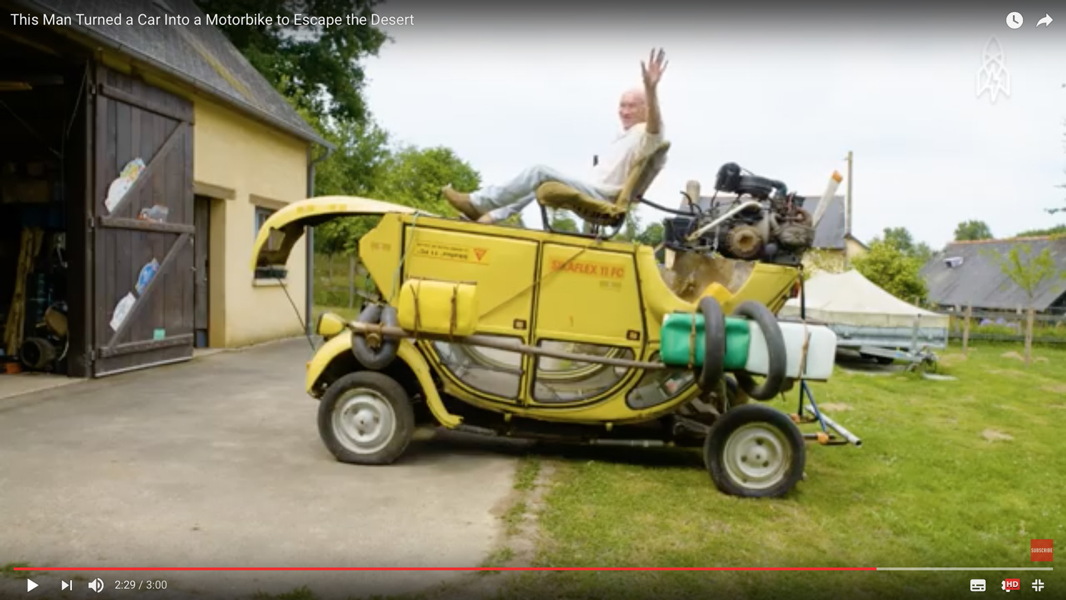 I believe the 2CV bike was indeed built in the desert, much as Leray claims, but he set out from France with the explicit intention of performing this task. Otherwise he’d have walked out like any normal person in a similar situation. His claimed unease about leaving his stricken car doesn’t ring true, let alone the spontaneous idea of making it into a two-wheeler. Tellingly, in 2006 Leray went on to build a ‘2CV boat’ in Mali. He clearly likes mucking about with 2CVs. Fair play to him!