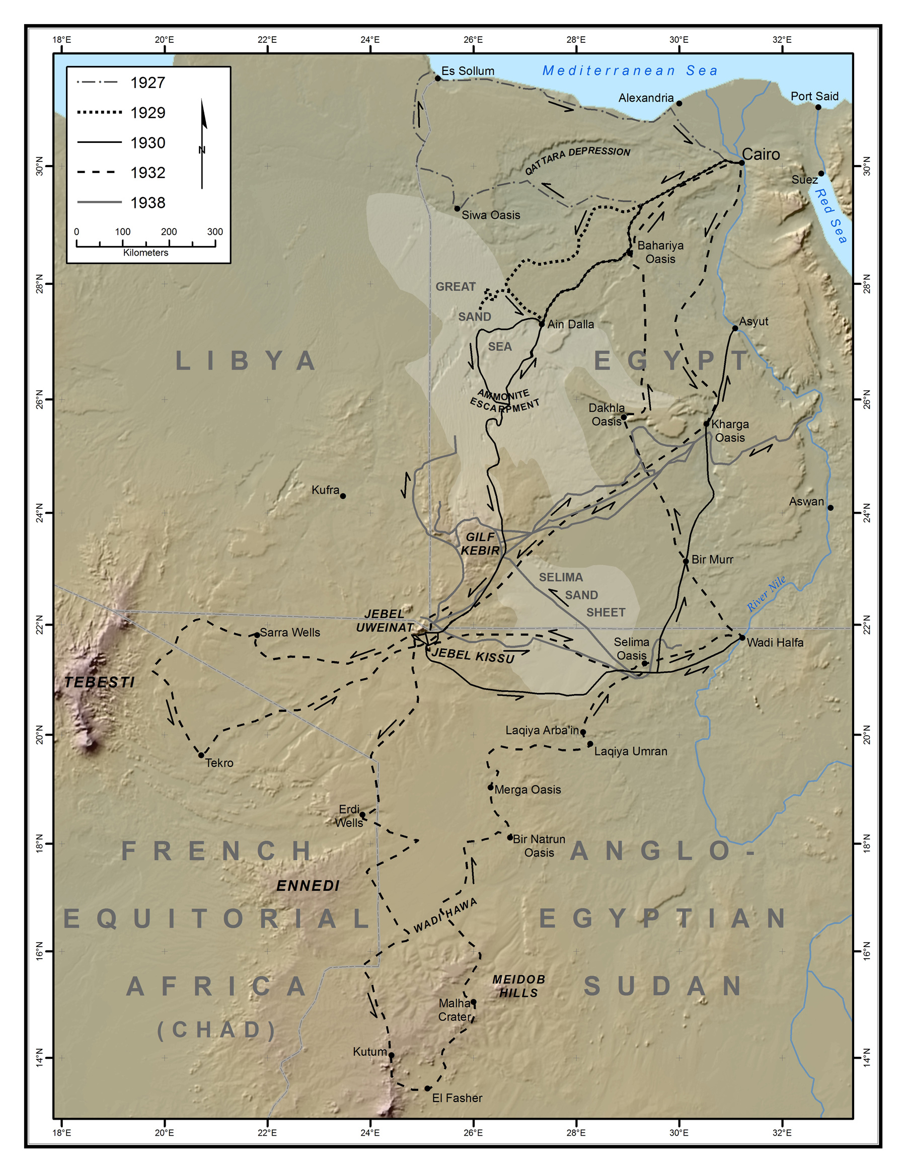 In 1932 they based themselves again at Jebel Kissu where they refuelled from Selima, then explored the Sarra Triangle (now in Libya) as well as northeastern Chad.