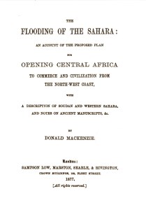 It’s hard to find out much about Donald Mackenzie, but in 1877, a few years before he set up the North West Africa Trading Company, he had a far more radical idea to capitalise on the trans-Saharan trade. He proposed nothing less than flooding the interior of the Sahara from the Atlantic so that, with the addition of a few canals which had proved so successful in Britain prior to the age of rail, ships could sail directly to Timbuktu and the Niger river in a matter of days, avoiding the arduous overland journey of weeks. As a side benefit the flooding would ‘green’ the Sahara, enabling agriculture to thrive across the wind-blown sands.