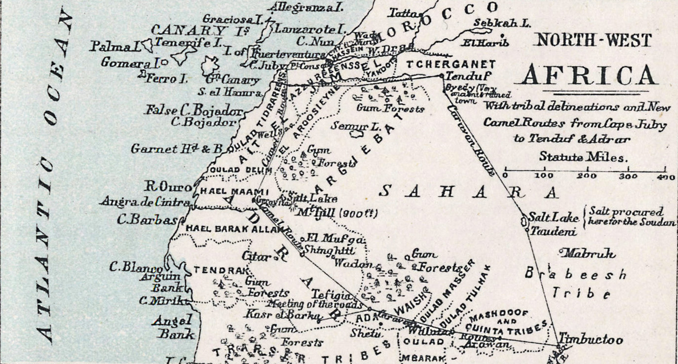 Mackenzie’s venture hoped to capitalise on the recent westward swing of the trans-Saharan caravan trade emanating from Timbuktu, by intercepting caravans before they reached the terminus at Wadi Noun (near today’s Guelmin). In fact, in a decade or more the NWAT Co barely covered its costs after compensation was finally agreed against an earlier raid and to abandon the post in favour of the Moroccan sultanate.