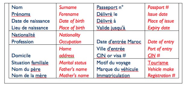 Western Sahara checkpoints and fiches As ‘Western Sahara‘ is a Moroccan military zone, checkpoints increase south of Tan Tan, and unlike up north, they don’t just wave foreigners through but want your passport details. Handing over a pre-printed ‘fiche‘ (French for ‘form’; below) helps speed up the process. Hand one over and they can log you into the ledger once you’ve gone. It seems fiches are less needed these days; I got through only about six on the way down – the last one at Dakhla Junction. Some checkpoints will insist on seeing your passport anyway; others just want a chat.