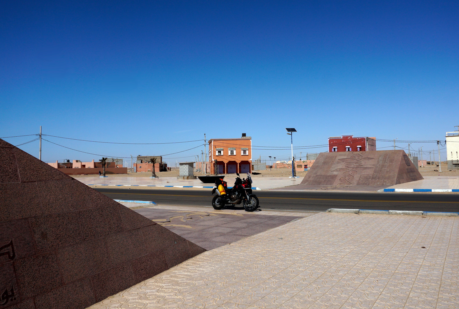 The monument at Tah On the N1 for Laayoune you’ll pass through nondescript Tah with no fuel and barely a cafe and shop to rub together. In the middle of town is a granite monument covered in Arabic inscriptions. It marks the spot where in November 1975, some 350,000 Moroccan civilians symbolically marched over the then border into Spanish Sahara.
