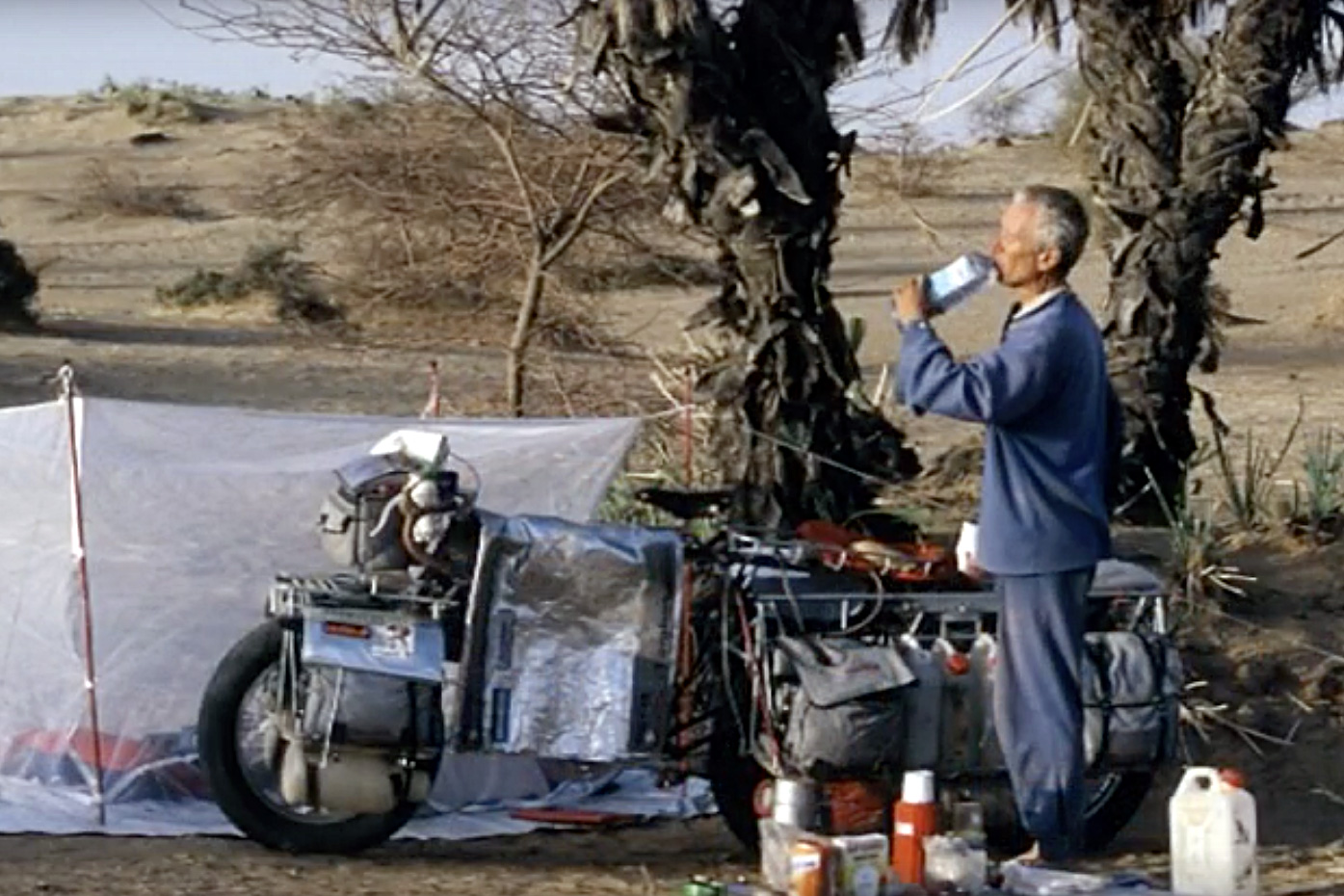 After visiting his childhood home in Blida, early in the trip while still unfit, it took Naud no less than eight hours to cover 14km on the climb to the 1300-m Col de Medea where the N1 tops out in the Atlas, before descending to the Saharan peneplain. Once fully loaded with 72 litres of water and another 60kg of gear, his 50-kilo monotrack three-wheeler weighed in at 180 kilos. That’s at least three times more than a modern touring bike, or five or six times heavier once fully loaded. Or, about the same as a small lightly loaded motorcycle ready for the desert. Imagine pedalling that!