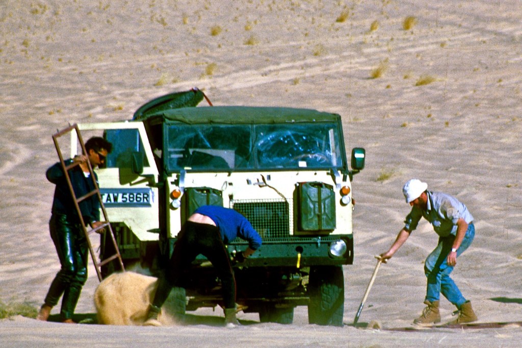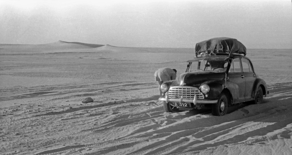 This encounter made a sobering impression. Here they were stuck with an ailing ordinary family car with a broken rear spring, unstable steering and wheel bearings grinding with sand. Crossing the vast Sahara suddenly seemed like a daunting prospect. The only problem was the price they’d get for the clapped-out Austin wouldn’t even cover a single flight home. In silence they tried again to secure the broken spring by wrapping the handbrake cable around the broken leaves along with a pair of old trousers. At first glance, the repair seemed adequate.