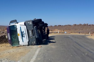 In the 80s the army were tasked with building a road over the Fadnoun’s switchback escarpments. Up to that point trucks supplying isolated Djanet had to take a huge, sandy detour to the west via Amguid, nearly doubling the road distance. Today the Fadnoun (below) is sealed and still a great drive, even if occasionally lorry drivers fall foul of the Fadnoun’s curves, as left.