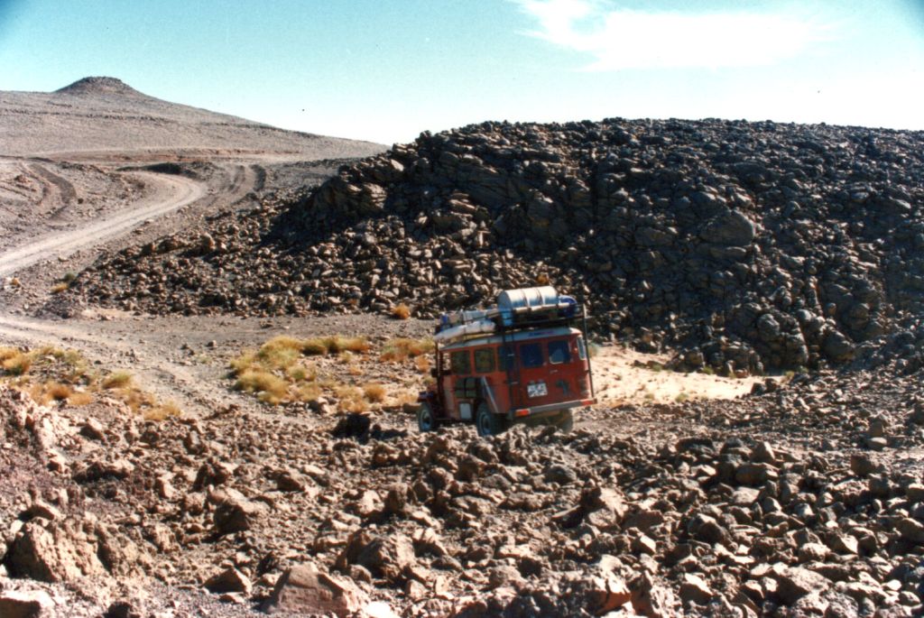Caught on camera west of Serouenout (Bing Maps)Rubble tracks into the Hoggar (’87)Desert Riders camp south of Tazat ’03)