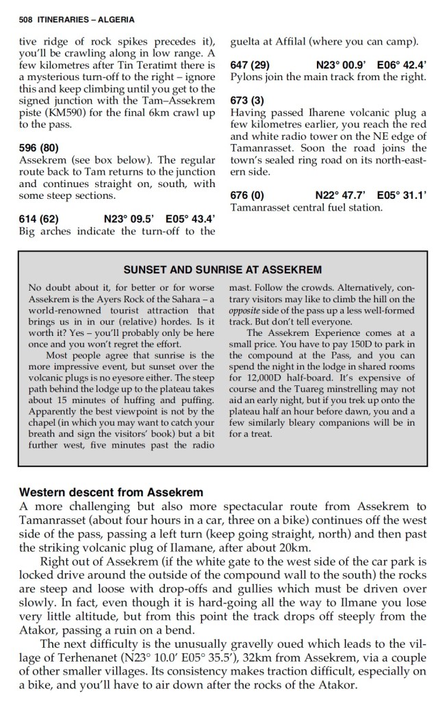 It’s never over till it’s over, but I’m sure for a first timer rolling down the TSH to Tam, then east to Djanet before heading back up for either Tunisia or the Algerian Med ports, this full 5000km loop would still be a big adventure, just as it was for me in the 1980s. All the better too, if you can dodge the highway gendarmes – easier in the east side and on a moto, it seems.